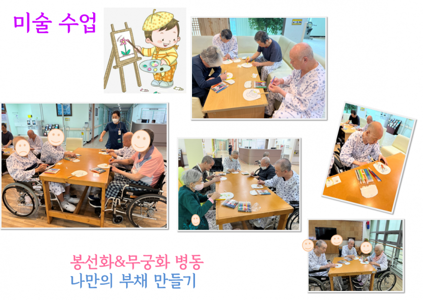 7월 비약물 프로그램(미술수업) 페이지 정보 작성자 경기도립노인전문동두천병원 댓글 0건 조회 1,301회 작성일 25-08-03 16:04 목록 본문 개성있는 나만의 부채가 완성되었네요~^^ 이전글비약물프로그램-인지재활 25.08.04 다음글7월 비약물프로그램 (원예수업) 25.08.03 댓글 0 댓글목록 등록된 댓글이 없습니다.