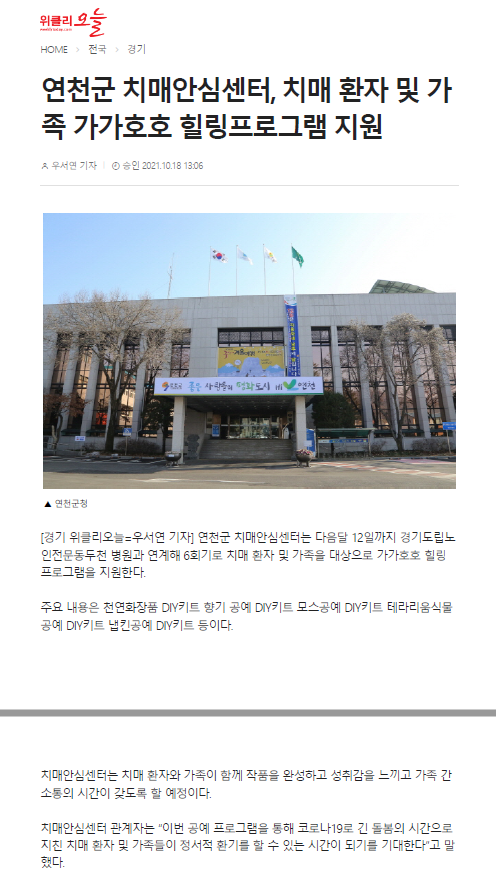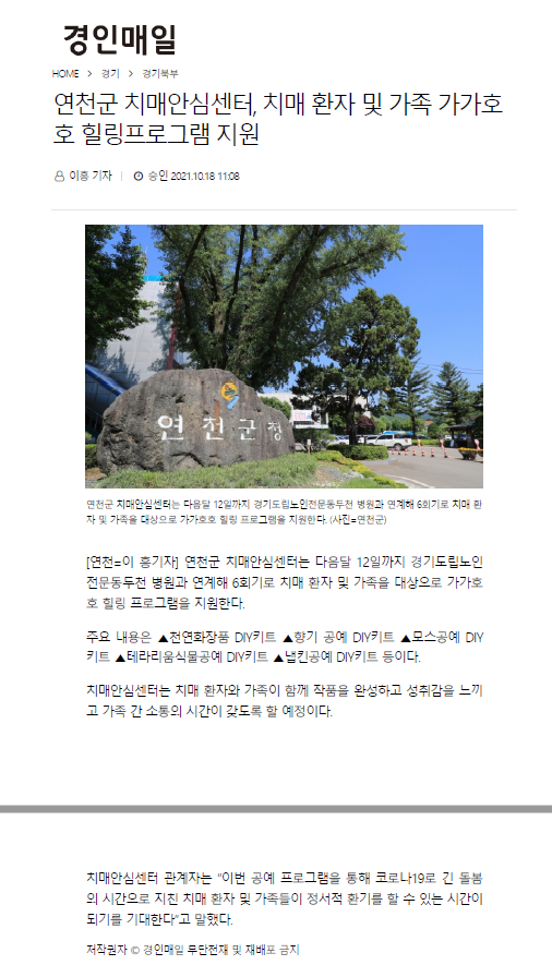 '우리, 함께, 여기 보듬다듬' 프로그램을 연천군, 동두천시 치매안심센터와 함께 수행 중에 있으며,